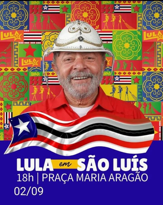 Além do ex-presidente Lula e do Governador Carlos Brandão, o evento contará com a participação de Flávio Dino e Felipe Camarão (PT)..Tá confirmado! No dia 02/09 vamos receber o presidente Lula no maior ato político do Maranhão e um dos maiores do Brasil nessas eleições 2022. Comigo, Lula, Dino e Camarão, vamos fazer ainda mais para garantir desenvolvimento com qualidade de vida a todos os maranhenses”, anunciou Carlos Brandão.
