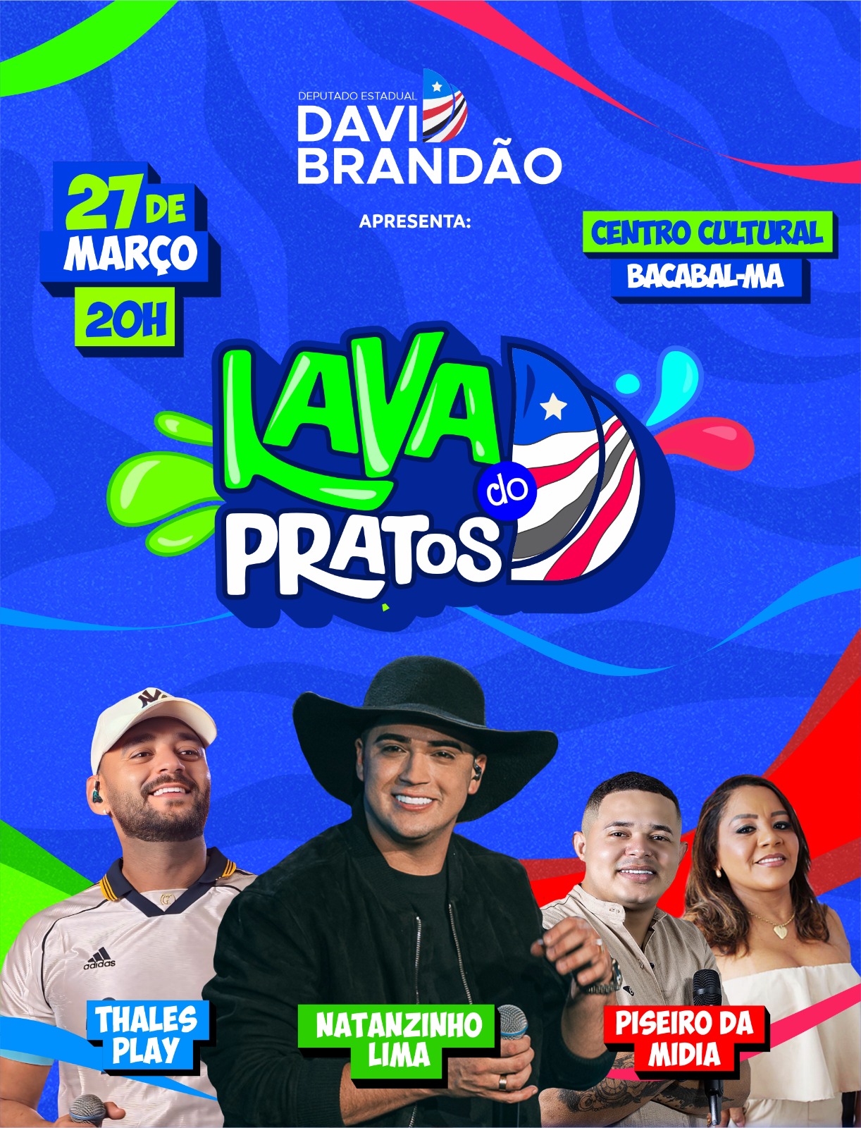 TERCEIRO LAVA-PRATOS “DB”TRÁS DE VOLTA O CARNAVAL FORA DE EPÓCA DE BACABAL,COM O APOIO DO DEPUTADO DAVI BRANDÃO DIA 27, NO CENTRO CULTURAL PRESENÇA GARANTIDA DE NATANZINHO LIMA E VÁRIAS ATRAÇÕES REGIONAIS