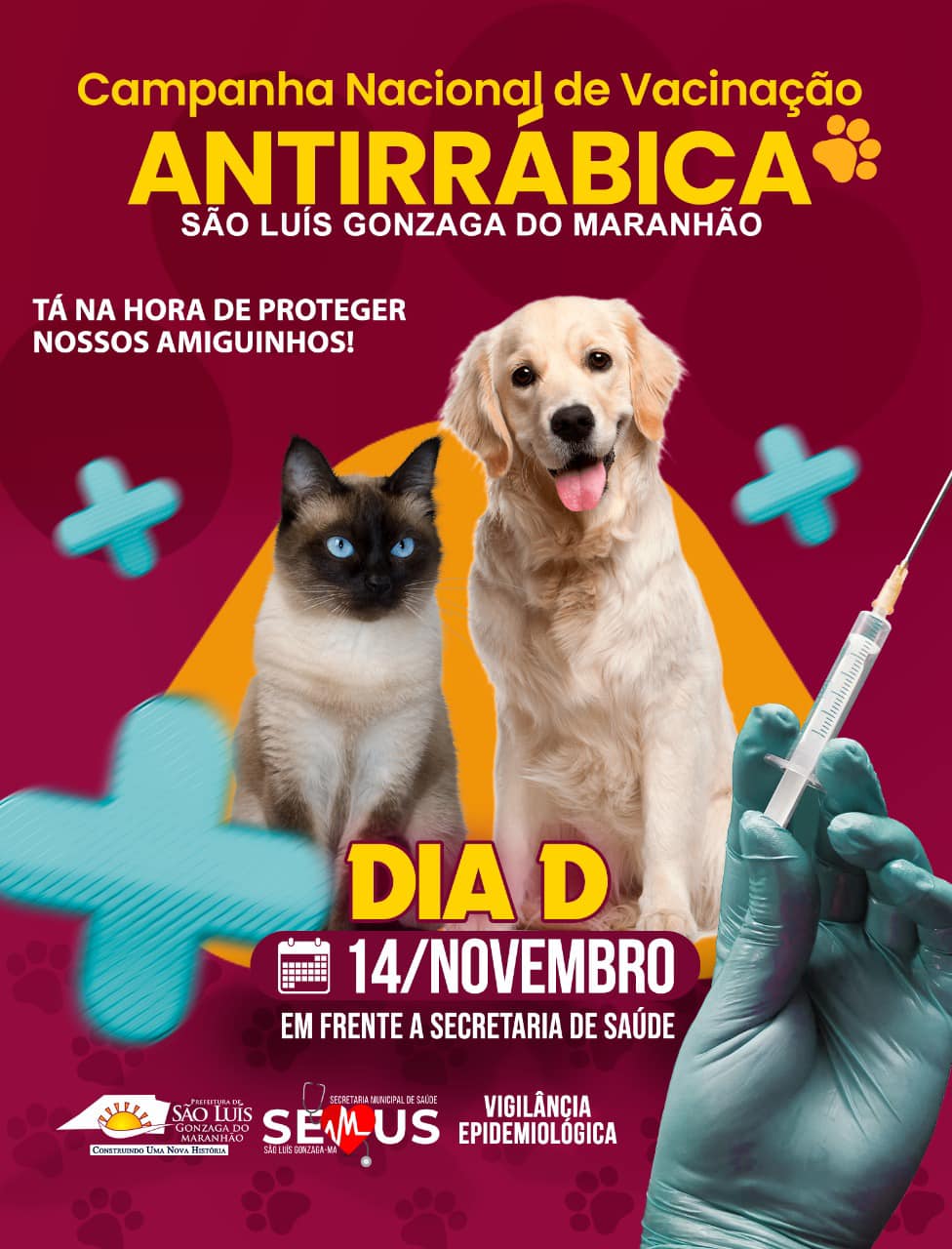 A Prefeitura Municipal de São Luís Gonzaga do Maranhão, através da Secretaria Municipal de Saúde – SEMUS, por meio da Vigilância Epidemiológica  realizou  ontem  dia  (14) o ‘Dia D’ da Campanha Nacional de Vacinação Antirrábica.
