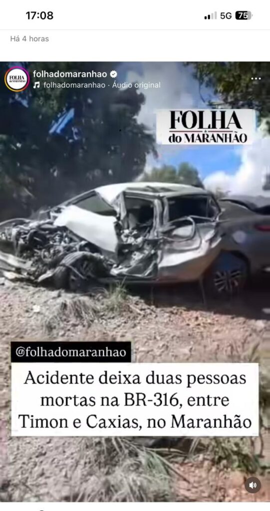 ACIDENTE | Um grave acidente ocorrido na tarde desta sexta-feira (23) resultou na morte de duas pessoas na BR-316, trecho que liga os municípios de Timon e Caxias, no Maranhão. A colisão frontal envolveu um carro de passeio e uma carreta. As vítimas, que estavam no automóvel, foram identificadas como Carminda Elizabeth e Márcio Vicente.